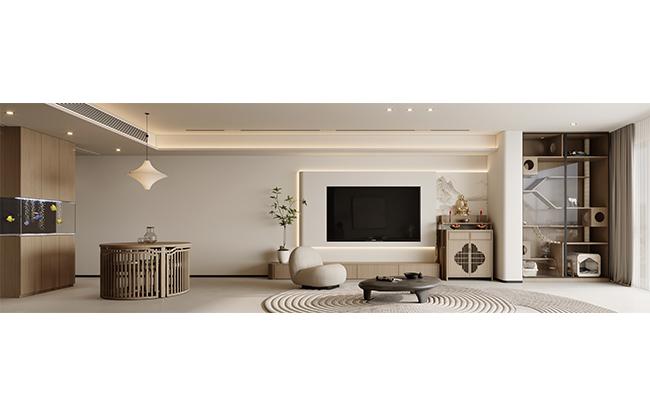 這個客廳以 “城市窗景與雅致松弛的共生” 為核心設計理念:借全幅落地窗將城市天際線納入空間,讓室內外景觀自然銜接。淺米色軟體家具 + 低飽和質感軟裝,營造松弛的居停氛圍;大理石背景墻與金屬燈具點綴,平衡柔和與精致。布局上以環形沙發圍合出互動場域,既保留開闊視野的通透感,又通過細節材質的層次,讓都市居所兼具 “觀城的開闊” 與 “居家的溫暖”。