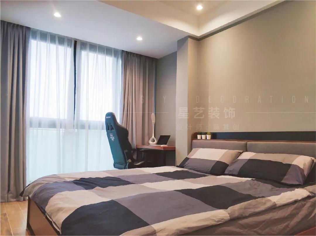 主臥用落地玻璃窗將原先的陽(yáng)臺(tái)封起來(lái),然后把陽(yáng)臺(tái)給打掉,讓陽(yáng)臺(tái)的空間劃分到主臥里,擴(kuò)大了整個(gè)主臥空間。