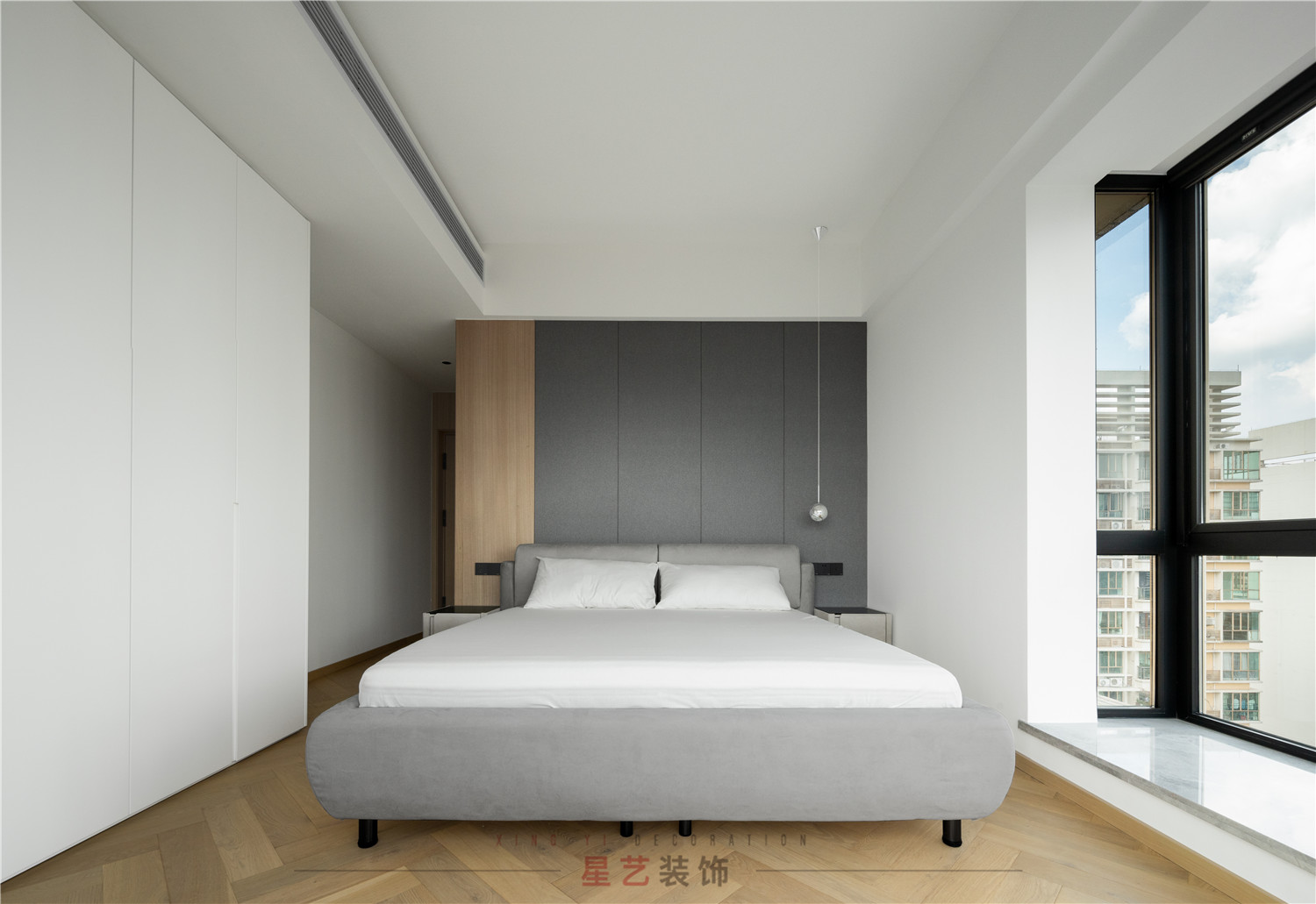 臥室中的空間感就顯得格外靈動,延申的窗臺能感受每天日出日落。生活需要儀式感,而家的裝修,是我們度過余下幾十年的基礎,在這里,想要感受夏日的清涼還是冬季的暖陽都是極致舒適的體驗。