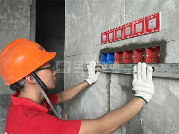 固定底盒時用水平尺校正,確保底盒水平端正。