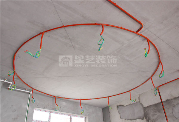 (6)天花燈位留線以天花實際標高留長200mm,并卷成螺旋狀,