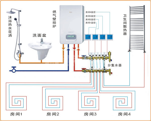 (2)循環熱水布管:熱水器的熱水出口一直將熱水送到每個用水點,